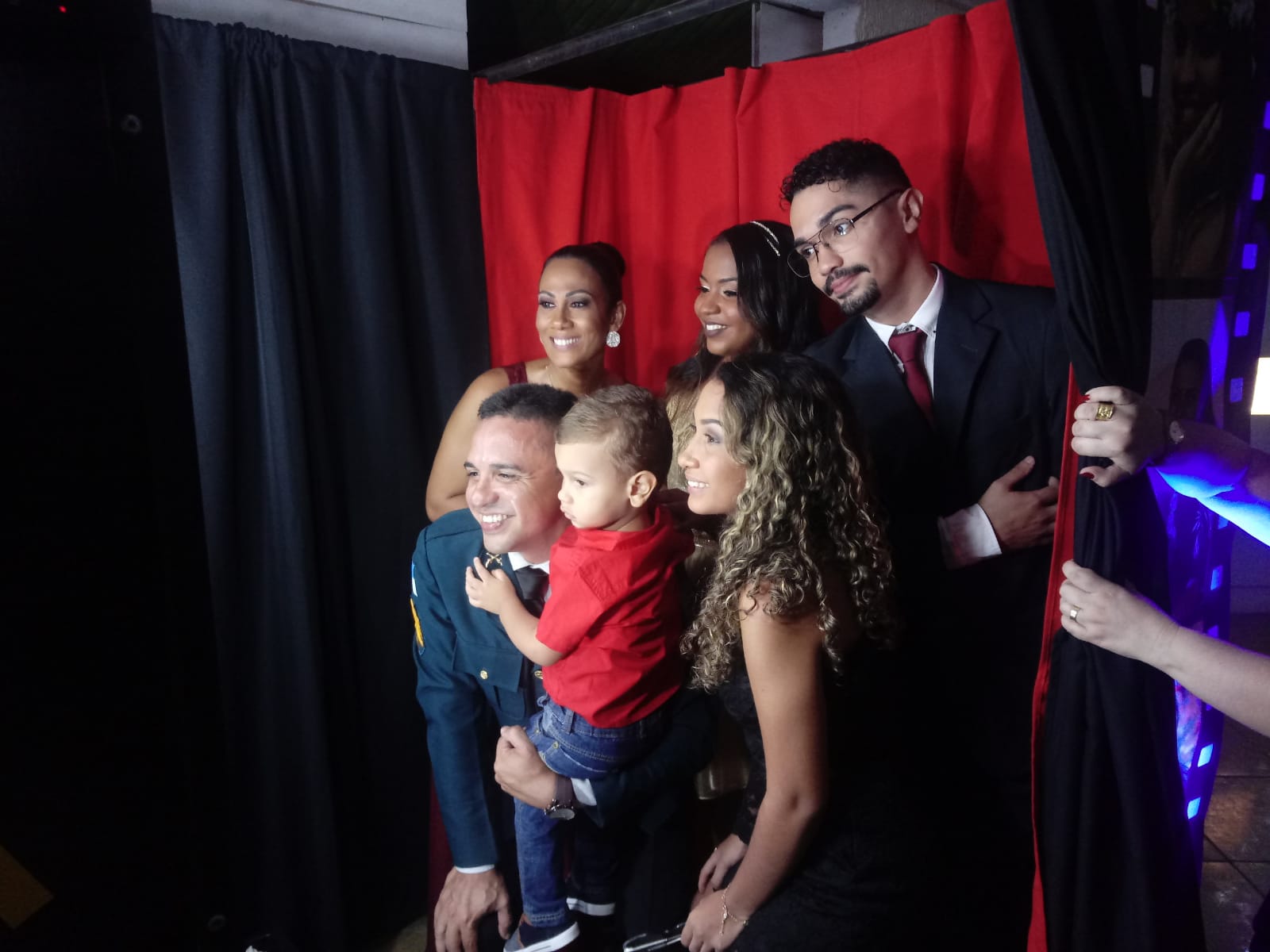 A cabine Curió Fotolegal comporta até 8 convidados na mesma sessão.